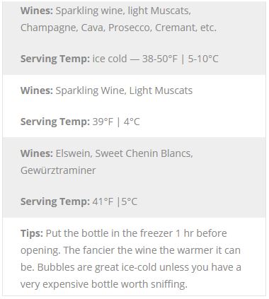 Sparkling/Sweet Wine Serving Temperatures