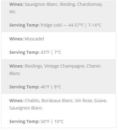 White Wine Serving Temperatures