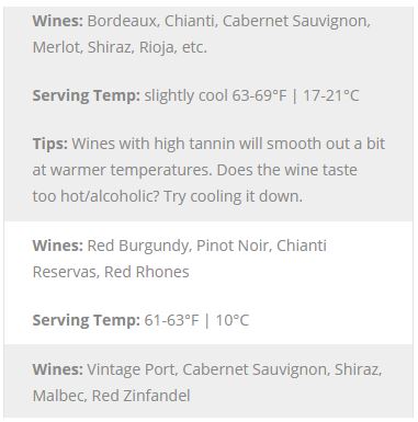 Rich Red Wine Serving Temp.